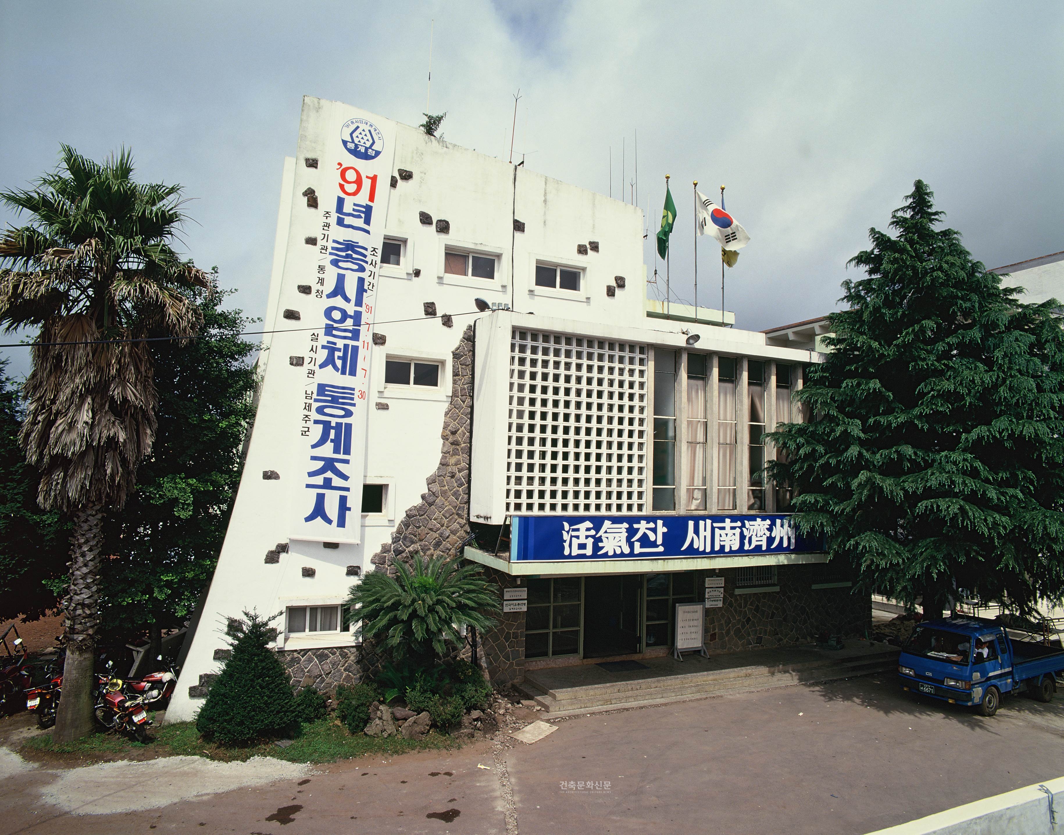 뒷산의 경사와 반대되는 지붕물매를 가진 덩어리(중앙도서관)를 지붕 위에 얹어 놓은 제주교육대학(1971)이나 건물의 일부를 제주석으로 마감한 남제주군청사(1964) 등 그의 작품은 “민족성, 지역성, 산업수준에 맞는 경제적이고 합리적인 구조방식과 함께 아름다움을 추구”하는 그의 건축철학과 철저히 부합되고 있다.