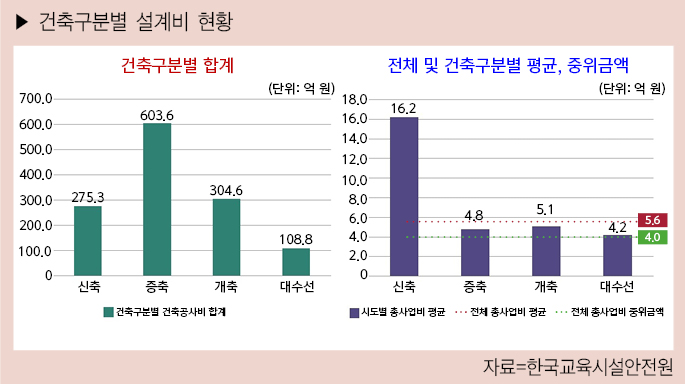 평균 신축 설계비 16.2억, 개축 5.1억, 증축 4.8억…평균 설계비 5.6억