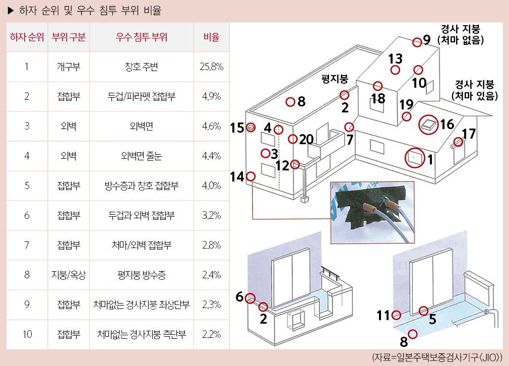 일본주택보증검사기구, 목조주택 빗물 누수 문제 분석 통계 발표