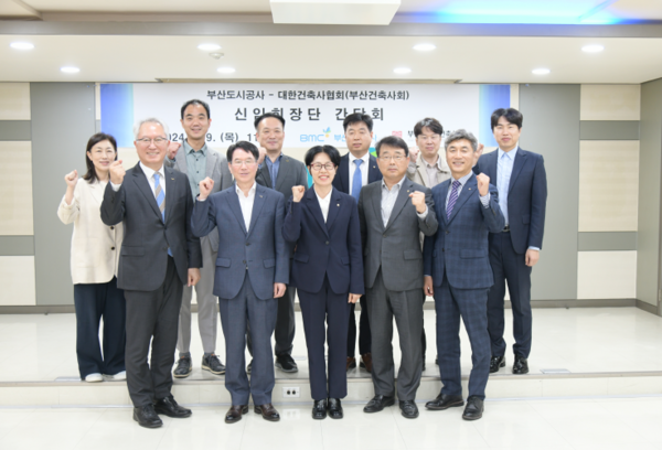 부산광역시건축사회가 부산도시공사와 ‘지역건설 전반에 대한 현안사항 및 발전방향’을 주제로 간담회를 가졌다. 5월 9일 부산도시공사에서 개최된 간담회에는 부산시건축사회 강미숙 회장, 박동조·송세길 부회장을 비롯한 회장단과 부산도시공사 김용학 사장, 이상용 도시창조본부장 등 관계자들이 참석했다.