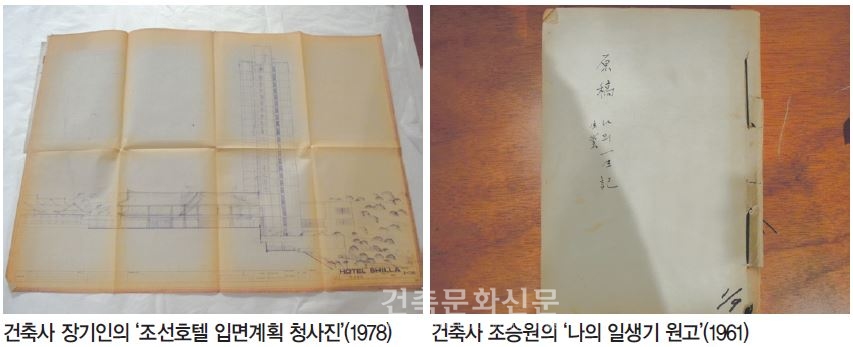 2부(건축 사료의 탐색)에서는 미공개 건축인들의 육필 원고와 최초 공개되는 도면, 모형, 사진 등을 직접 감상할 수 있다. 독학으로 건축에 입문한 대목수 조승원의 저서 ‘나의 일생기-생업’, 한국건축용어를 새롭게 정립한 건축사 장기인의 육필원고, 지방건축 발전에 크게 기여한 건축사 김한섭의 건축도면 등이 최초로 공개된다. 또한 ‘조선건축’, ‘건축’, ‘공간’ 등 각종 잡지를 통해 발표된 글들을 통해 당시의 시대적 상황을 극복해나가기 위한 한국건축인들의 생각을 읽을 수 있다.