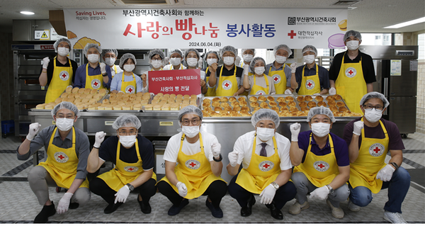 부산광역시건축사회가 대한적십자사부산지사와 함께 6월 4일 ‘사랑의 빵 전달’ 봉사활동을 실시했다.