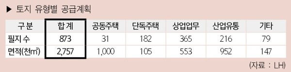 공동주택용지 이외에도 전국에서 단독주택용지 182필지 11만 제곱미터, 상업업무용지 365필지 55만 제곱미터, 산업유통용지 216필지 95만 제곱미터, 기타 토지 79필지 15만 제곱미터 등의 토지를 공급할 계획이다.