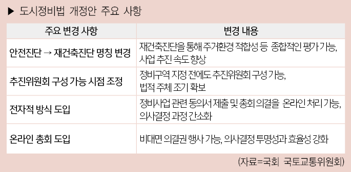 재건축 사업의 기간이 최대 3년 단축될 것으로 기대된다. 9월 26일 국회 국토교통위원회를 통과한 ‘도시 및 주거환경정비법(도시정비법)' 개정안에 따르면, 재건축 안전진단 제도가 개선되고, 정비구역 지정 전에도 추진위원회 구성이 가능해져 사업이 더 빠르고 안정적으로 진행될 수 있는 길이 열렸다.