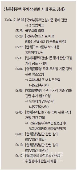 원룸형 도시형생활주택 주차장 관련 ‘주택건설기준 개정’ 사태가 수습이 안 되고 있는 가운데, 국토교통부와 법제처를 대상으로 한 행정소송이 예상되고 있다.<본지 6월 16일자 관련 기사 게재>