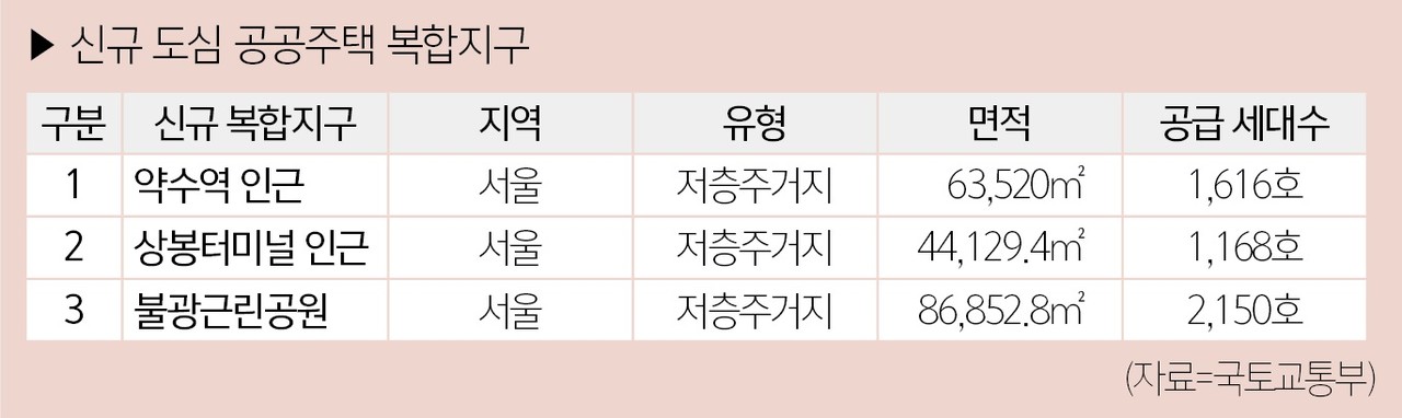 국토교통부는 12월 19일 약수역, 상봉터미널, 불광근린공원 등 서울 3곳을 도심 공공주택 복합지구로 지정했다고 밝혔다. 이번 지구 지정으로 올해 총 1만 5천 호의 복합지구가 지정됐으며, 이는 전년도 대비 3배 이상 증가한 수치다.