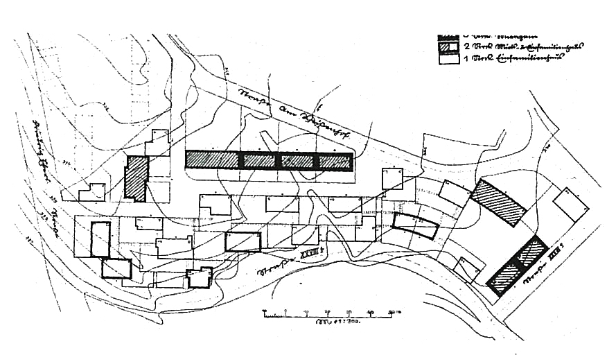 초기 마스터 플랜을 보면 이 둘의 태도가 얼마나 다른지 알 수 있다. 헤링의 안은 각각의 건물들이 대지의 물리적 맥락에 반응하여 독립되어 있지 않고 다른 건물과의 관계 속에 위치해 있음을 알 수 있다.(그림2) 그러나 이 안은 독일공작연맹 측에서 실현불가능하다는 판단을 받고 미스가 이를 수정하여 제시하게 된다. 수정된 안을 보면 각각의 건물은 독립된 하나의 오브제로 대지의 물리적 맥락과 거리를 둔 채 배치되어 있다.(그림 3) 이 극명한 태도차이로 인해 둘의 심기는 이미 불편해 질대로 불편해 져 있는 상황에서 또 하나의 문제가 불거진다. 전시에 참여하는 건축가들에게 지급되는 적은 설계비 문제였다. 헤링은 진취적 건축집단의 총무로서 정상적인 설계비를 요구했으나 독일공작연맹의 회장 및 전람회의 책임자로서 미스는 최초이자 중요한 건축사건인 만큼 전향적인 태도를 강조했다. 이런 갈등을 해결하지 못하고 결국 헤링과 데르 링의 중추적인 역할을 했던 에릭 멘델존(Erich Mendelsohn, 1887-1953)은 참여자 명단에서 스스로 빠지게 된다.
