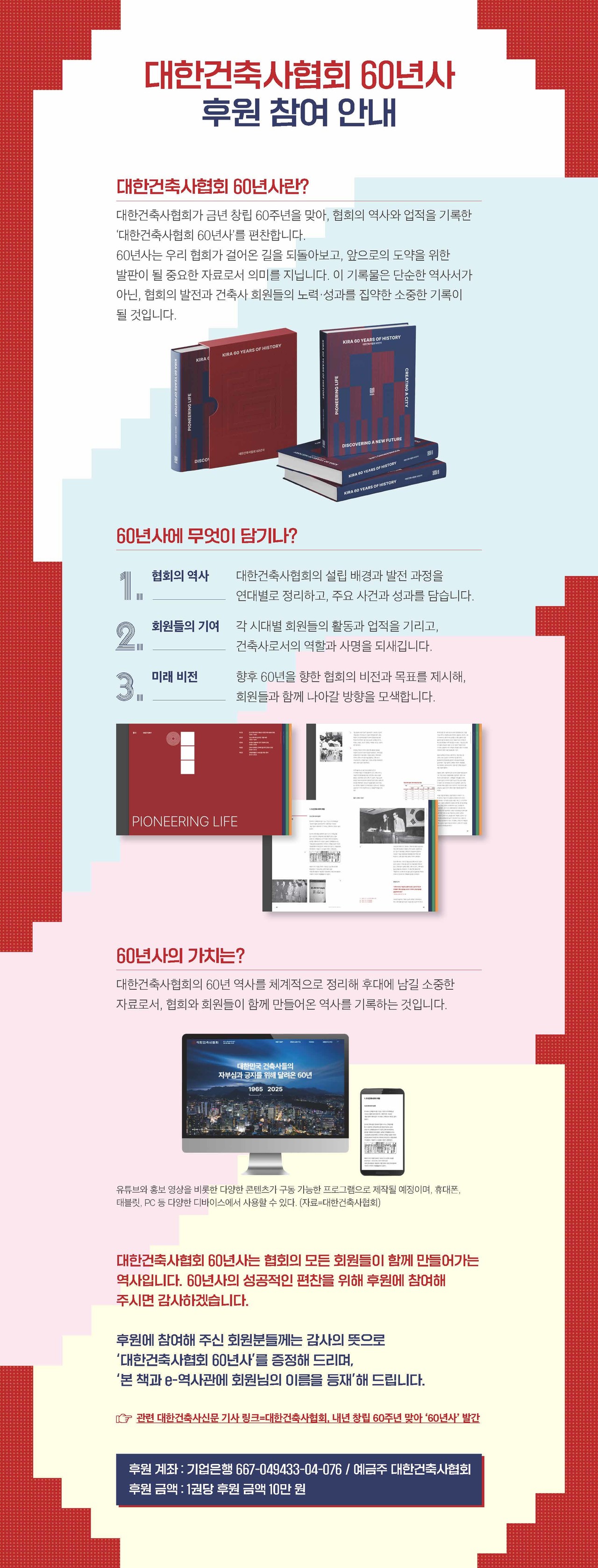 대한건축사협회 60년사 후원 참여 안내 및 신청 바로가기