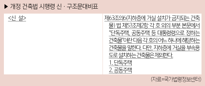 이를 반영해 지난해 6월 18일 건축법 시행령이 개정·시행됐다. 규개위는 “반지하주택 침수 피해는 예방하면서 건축물 지하층을 문화공간 등 부속용도로 활용할 수 있도록 함으로써 국민의 재산권 보장을 가능하게 했다”고 밝혔다.