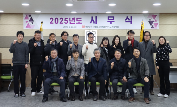 강원특별자치도건축사회는 1월 10 일 강원도건축사회관에서 ‘2025년도 시무식’을 열었다. 강원도건축사회 정병거 회장은 신년사에서 “지난 한 해 어려운 여건 속에서도 회원들의 협조로 도내 각종 현안들을 원만하게 처리할 수 있었다”며 “새해에도 건축사회 발전을 위해 회원 및 임직원의 협조와 관심을 부탁드린다”고 말했다.