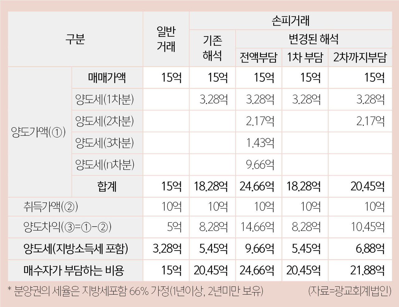 분양권 시장에서 종종 활용되던 이른바 ‘손피 거래’가 기획재정부의 양도소득세 해석 변경으로 인해 앞으로는 어려워질 전망입니다. ‘손피’는 ‘매도인의 손에 쥐는 프리미엄’의 약칭으로, 매수자가 매도자의 양도소득세를 대신 부담하는 조건의 매매 거래를 의미합니다.