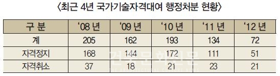 불법 대여사실이 적발될 경우 ‘국가기술자격법’에 의해 자격증 대여자는 자격이 취소(또는 정지)될 뿐만 아니라 형사처벌(1년 이하의 징역 또는 500만원 이하의 벌금)도 받게 되며, 자격증을 대여 받은 업체와 대여를 알선한 자도 같이 처벌된다.