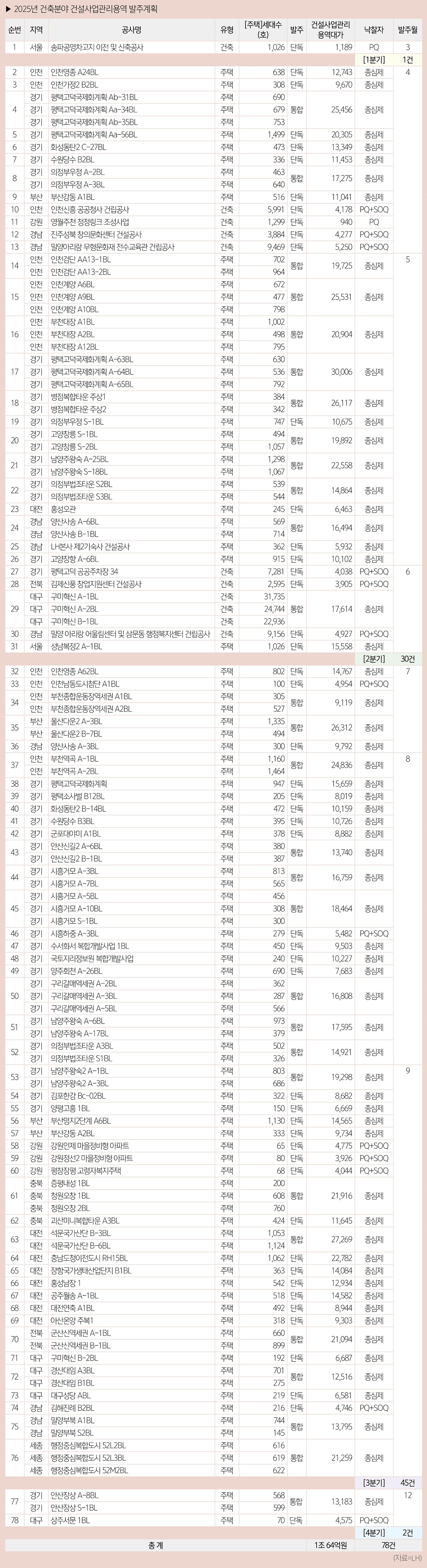 12월에는 안산장상(주택), 상주서문(주택) 건 등 2건이 계획돼 있으며, 이를 통해 올해 총 78건, 대가 규모 1조 64억 원의 건설사업관리 프로젝트가 진행된다.