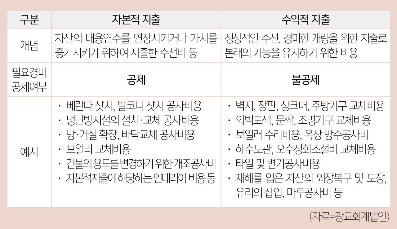 가치 상승 위한 공사비는 필요경비로 인정 가능