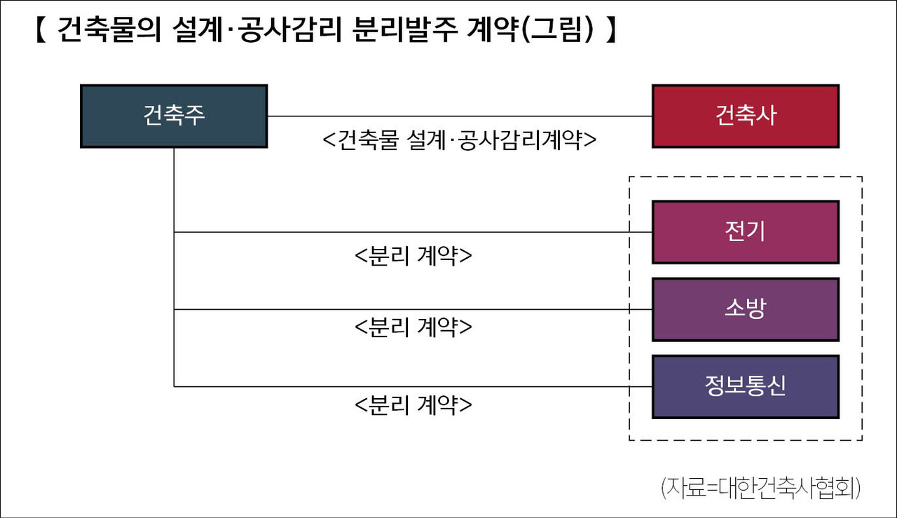 이와 관련 국회 국토교통위는 검토보고서를 통해 “건축 관련 산업이 발전하고 건축물에 요구되는 품질이 높아짐에 따라 건축 관계 분야가 복잡·세분화되어 건축물의 설계·공사감리 과정에서 관계전문기술자와 협력의 필요성이 강화되고, 건축 관련 전문분야의 분리가 확대되고 있다”며 “건축물의 설계·공사감리 과정에서 분리발주가 확대될수록, 각 분야별 종합조정자 역할의 부재로 인해 건축 각 부분의 정합성이 결여되는 등의 문제가 발생하고, 이는 건축물의 설계·공사기간 증가와 재시공 등의 사유로 인한 공사비 증가로 이어진다는 지적이 있다”고 설명했다.
