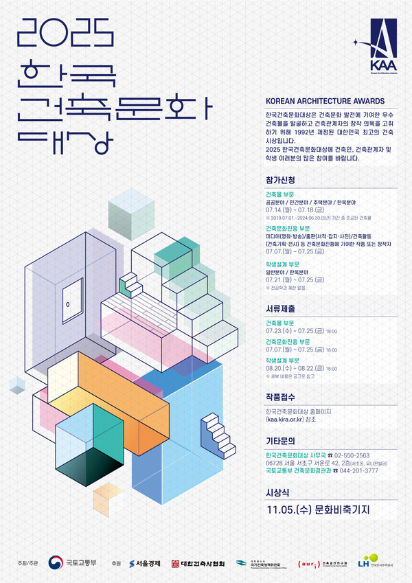 2025 한국건축문화대상이 7월 14일부터 7월 18일까지 참가신청을 받는다.
