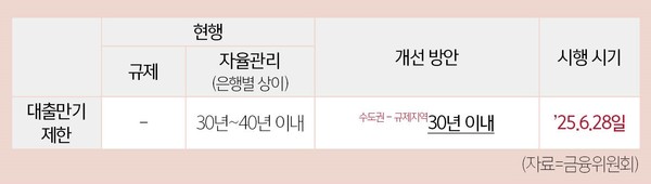 더불어, 수도권·규제지역 내 주담대 대출만기를 30년 이내로 제한해 DSR 규제 우회를 방지한다.