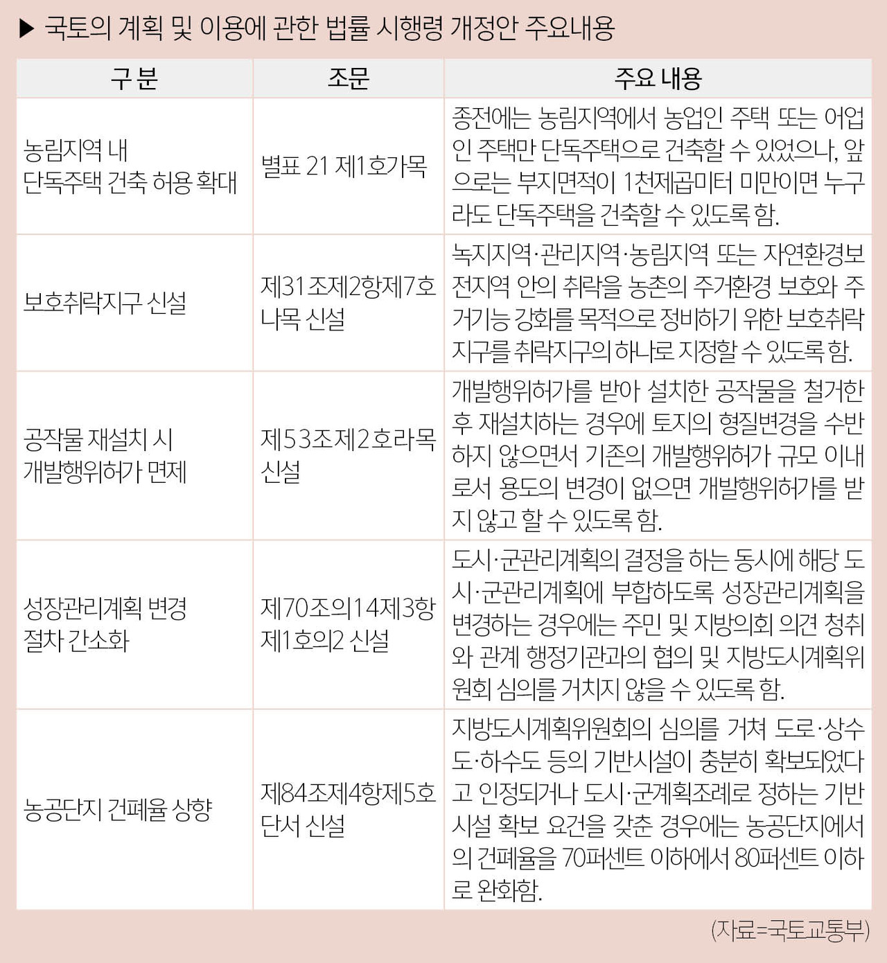 농림지역 단독주택 건축 요건 완화·농공단지 건폐율 상향