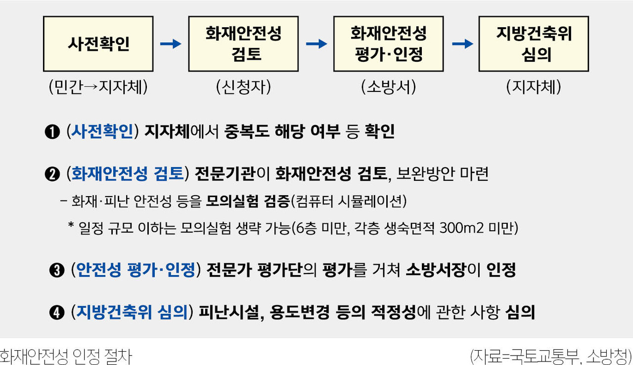 국토교통부와 소방청은 제도 시행에 앞서 화재안전성 가이드라인을 7월 중 배포하고 설명회를 개최할 예정이다.