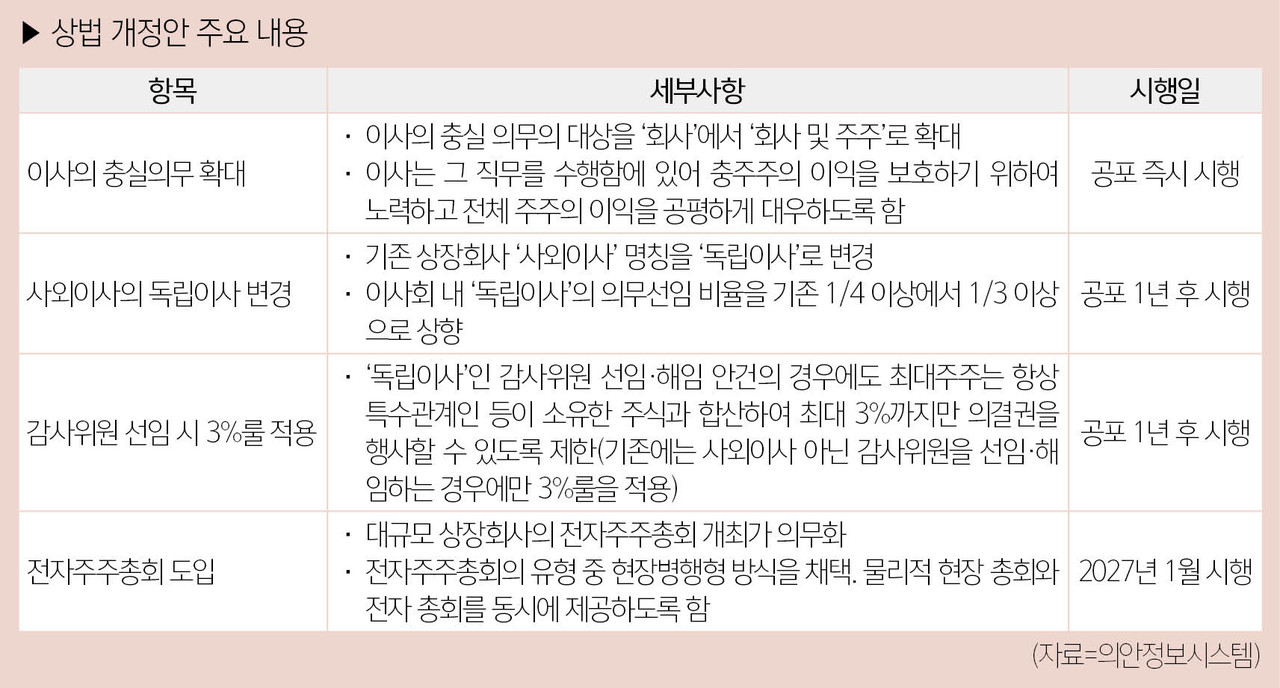 이사의 충실의무 확대, 전자주주총회 의무화, 3%룰 확대 적용