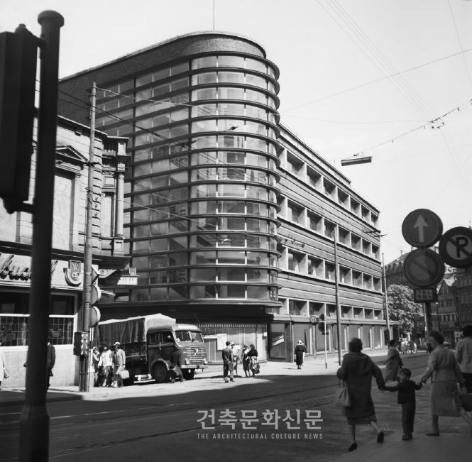 건축인들의 반대에도 불구하고 1960년에 철거된 이 건물은 스투트가르트 시, 오래된 재래시장이 있던 블록의 남측 끝에 위치해 있었다. 성곽이 헐리고 생긴 완만한 곡선도로가 대지의 남측 전면을 지나가고, 대지는 그 도로의 중앙에 위치하여 결과적으로 건물은 그 블록의 랜드마크가 될 수밖에 없는 맥락적 상황이었다. 대지의 전면에 새로 생긴 자동차도로와 블록 내부의 오래된 작은 가로들은 이 건물이 두 가지의 상이한 맥락에 반응해야 하다는 것을 의미했고, 멘델존은 덩어리와 입면의 구성으로 그것을 드러내고 있다. 그는 남측 자동차도로 쪽으로 네 개의 층을, 블록을 향해서는 두 개 층으로 구성된 덩어리를 배치하고 그 두 덩어리가 만나는 경계 양끝에 코어를 놓았다. 전면 도로를 향해 돌출된 남서측의 투명한 반원형 코어는 방문자들을 위한 수직 동선을 담당했고, 블록 안으로 삽입되어 있는 것은 직원들을 위한 것이다. 이 두 코어를 경계로 하여 입면의 요소들도 구별된다. 이 건물은 철골구조를 주 구축방법을 하여 콘크리트, 유리, 철 그리고 전기설비 등 당시로 본다면 최신 기술과 재료를 사용한 건물이었다. 멘델존은 이 구축방법과 재료가 가진 장점이 드러나길 원했다. 남측 입면은 주 구조체인 철골의 존재를 드러내기 위해 벽돌과 석재마감으로 수평적 육중함과 창을 안으로 밀어 넣어 그림자 효과를 강조한 반면 블록 쪽 입면들은 단순한 벽돌쌓기와 요철 없는 창의 마감으로 평면적이고 중립적인 태도를 취했다. 맥락에 반응한 덩어리들의 구성은 결과적으로 각층 모두 다른 평면을 만들어냈다. 멘델존은 3개의 층을 관통하는 빛의 중정을 만들어 채광과 환기의 약점을 보완했다. “ㅁ”형식의 지상평면은 상층으로 올라가면서 점차 줄어들고, 줄어든 곳은 테라스로 사용되어 외부와의 소통을 가능케 했다. 지하층부터 지상3층까지 각 평면이 만들어내는 공간의 성격에 맞게 상품들이 배치 진열되고, 손님들은 새로운 방식으로 도시를 경험하며 쇼핑과 휴식이 결합된 새로운 소비를 할 수 있었다. 멘델존이 제시한 백화점은 도시의 새로운 활력을 불어넣는 또 하나의 문화적 장치였다. 전기설비의 도입, 철 프레임과 유리로 인한 투명성의 극대화는 벨기에의 아르누보 건축이념을 보는 듯하다.(본 코너 제2편 “사회주의 이념이 건축으로: 빅토르 오르타의 ‘민중의 집’” 참조) 자본도 투명해야 함을 강조하고 싶은 걸까?