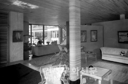 하지만 알토가 마이레아에서 가장 크게 천착한 테마는 예술과 삶을 융합하는 공간의 창조였다. 그는 미술품 수집가였던 마이레의 컬렉션을 수납하고 전시하기 위해 별동의 갤러리를 디자인한 바 있었지만, 이것이 오히려 예술과 삶의 분리를 가져온다고 믿게 된다. 결국 마지막 단계의 설계변경에서 거실을 커다란 정사각형(약 14m*14m)으로 만들어 갤러리의 기능을 통합시켰는데, 이는 실내를 분할하는 파티션과 같은 이동식 수장고를 설치하고 그 벽면에 회화를 전시함으로써 가능했다. 그가 제시한 ‘몇 점의 회화만을 전시해 감상하고 이를 주기적으로 교체해준다’는 개념은 흥미롭게도 도코노마(床の間)에 화병이나 족자를 전시하는 일본의 관습으로부터 온 것으로서, 요시다 테츠로의 『일본의 주택』(1935)에서 영감을 받은 사안이다(본보 175호 참조). 그러고 보니 예술과 삶을 융합코자 했던 실내공간 역시 동서양의 이질적 문화요소의 만남이 시도된 장이렷다.