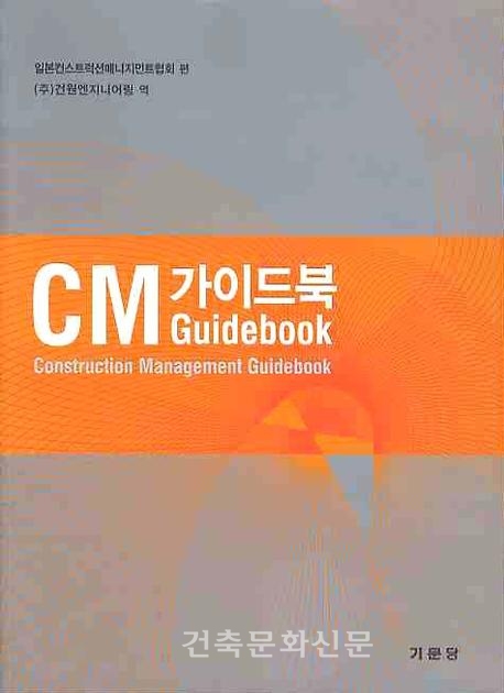 일본 컨스트럭션 매니지먼트 협회에서 CM(Construction Management) 가이드북을 발간하였다. CM업무의 본질을 이해하고, CM업무의 기준이 되는 교과서적인 내용을 담고 있는 이 책은 (주)건원엔지니어링이 번역하고 기문당에서 출간했다. 이 책은 다양한 발주자들에게 컨스트럭션 매니저(이하,CMr이라한다)가 올바르게 CM업무를 설명하여 CM업무의 내용을 정확하게 이해할 수 있는 측면에서 도움을 줄 수 있도록 정리되었다. 이 외에도 프로젝트 관계자인 설계자, 종합건설회사, 전문공사업자도 CMr 업무의 담당 범위를 알기 쉽게 설명함으로써 개별 프로젝트에 대한 모순과 역할분담을 납득시킨 후 활용할 수 있도록 되어있다.