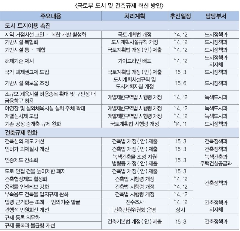도시 및 건축분야와 관련된 규제를 대폭 완화될 것으로 보인다.