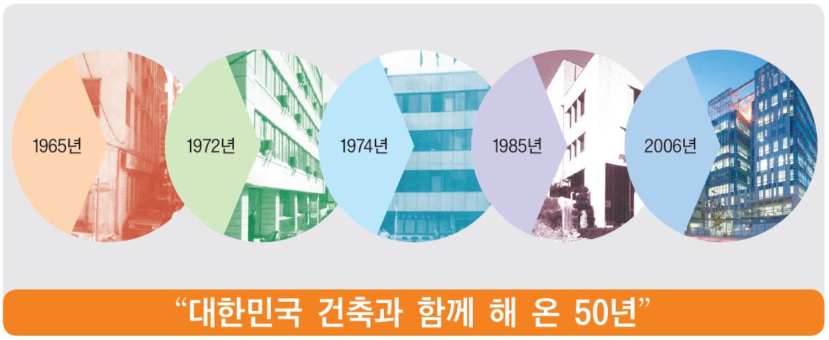 대한건축사협회가 오는 10월 23일 창립 50주년을 맞는다. 50년 전 출범 당시 회원 128명에 지나지 않았지만, 지금 9,606명이 함께 하는 전문가단체로 발전했다. 전국 17개 시도건축사회와 124개 지역건축사회, 7개 기구를 거느려 50년 전에 비해 조직, 예산규모, 사업 등 여러 면에서 눈부신 성장을 이뤄냈다.