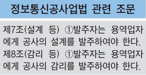 이렇게 될 경우 현행 정보통신공사업법 제7조제1항, 제8조제1항에 따라 건축물의 정보통신설비를 분리발주해야 해, 건축물 설계발주시 사업여건에 따라 선택할 수 있는 다양한 발주 및 사업관리 형태가 지나치게 제약될 수 있다.