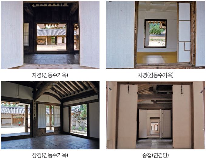한옥건축의 완성은 창호에 있다 해도 과언이 아닐 것이다. ▶입면적으로 벽의 대부분을 차지하기 때문에 그 집의 얼굴과도 같으며 심미성을 높이는데 중요한 역할을 한다. 벽이 창호이며, 창호가 벽인 것이다. ▶평면 및 공간적으로 내·외부공간과의 확장, 교감과 화합으로 서로 소통하게 하는 매개체 역할을 하며, 공간에 따라 무한한 변화의 다양함은 여러 가지 미적특성을 만들어 낸다. 자경, 차경, 장경, 중첩, 관입 등 이러한 미적요소들이 한옥만의 공간미학과 심미적 전략이라 할 수 있다.