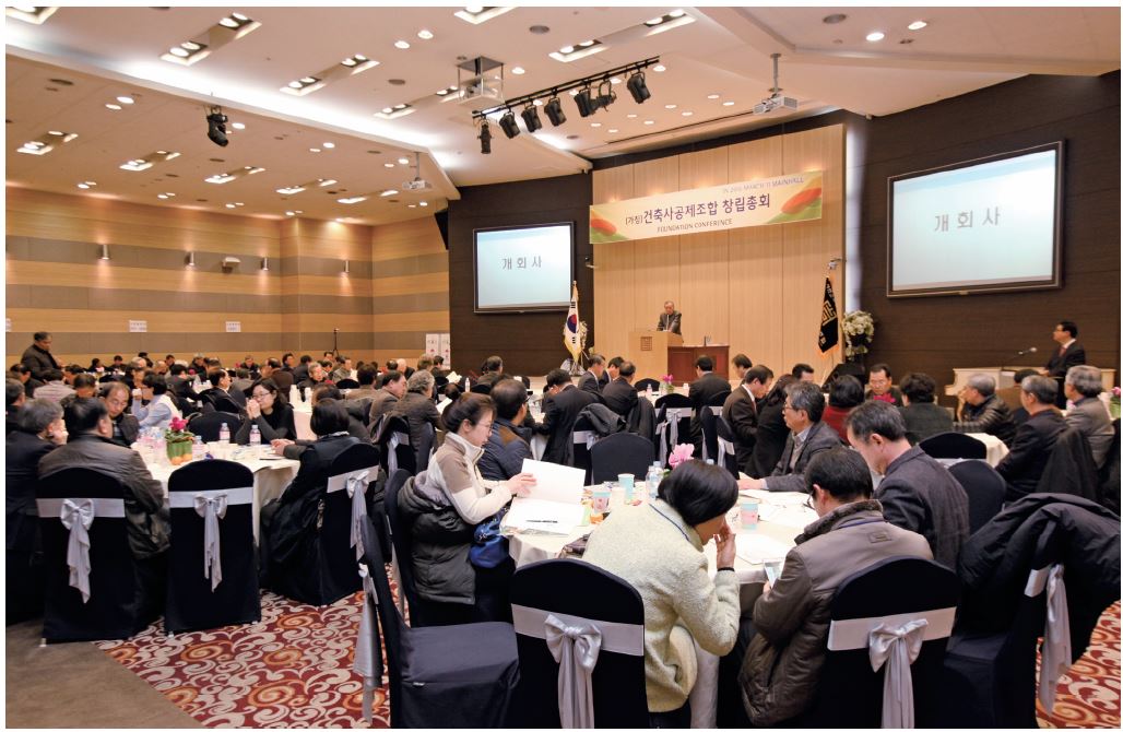 건축사공제조합은 3월 11일 서울 서초구 효령로 소재 건축사회관 1층 대강당에서 김영수 이사장을 비롯한 조합원 200여 명이 참석한 가운데 2016년도 제6회 정기총회와 건축사공제조합 창립총회를 가졌다.