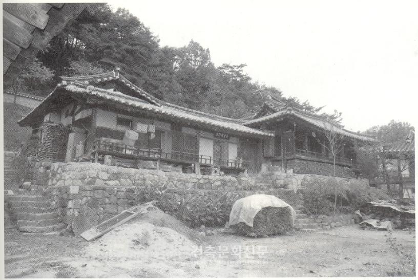 이 기법은 유파에 따라 여러 가지 기법이 있다. 다시 사랑채를 감아 돌거나 혹은 중문간을 들어서면 봉당이 있고 이것을 가로질러 안채 대청에 이른다. 안채 뒤에는 숲으로 둘러싸인 뒤란이란 공간이 마련되고, 안채 머릿방(건넌방) 옆에는 머리 뜰이 시설되어 아담한 정원이 꾸며져 있다.