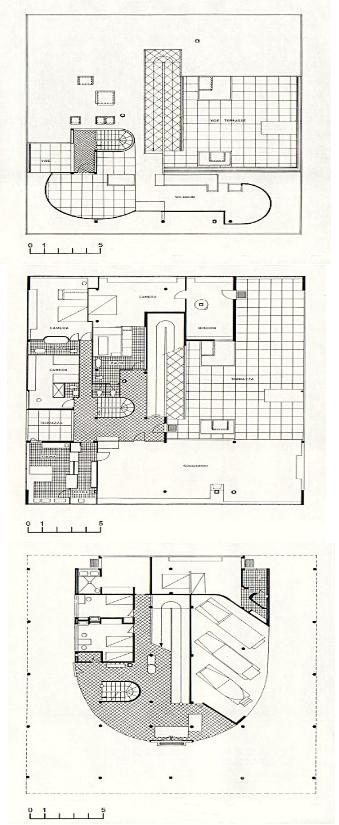 2층에서 다시 비탈길을 오르면 옥상 정원에 이른다. 우리 한옥도 안채를 돌아가거나 혹은 안채에서 직접 뒤로 나가면 뒤란의 정원으로 나가게 된다. 뒤란에는 나무가 우거지고 담장을 둘러서 외부의 시선이 차단되는 곳이다. 여기에서 차를 마시거나 풍류를 즐기기도 하며 휴식을 취한다. 이렇게 보면, 꼬르뷔제의 르 사보아 저택은 평면이 우리나라 한옥과 이론적으로 아주 유사함을 발견할 수 있다. 다만 우리는 거의 수평에서 층위가 이루어지는 반면 꼬르뷔제는 이것을 적극적으로 상부로 올렸다는 사실만 다르다.