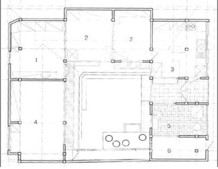 마당 동쪽은 벽체가 개방된 채 마당의 정원으로 쓰이고, 서쪽에는 이 집의 부대시설인 부엌과 욕실, 기타 등등이 배치되었다.