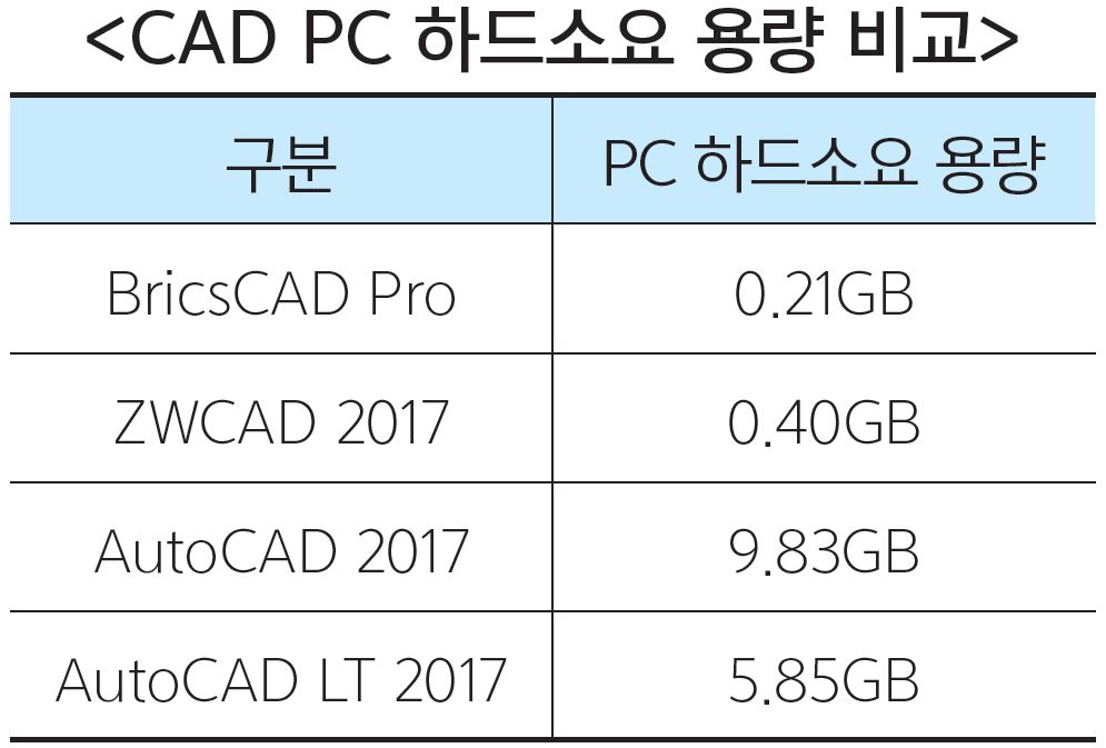 최근 6월 28일 출시된 ‘ZWCAD 2017’은 안정성과 관련해 ZWCAD관계자에 확인결과 “올 6월 29일 출시된 ‘ZWCAD 2017’은 사협과의 공동구매서비스를 감안 해 건축분야에는 공급하지 않았고, 기계·제조분야에 300 Copy 정도 공급했는데 안정성과 관련해 현재까지 아무런 문제 제기가 없다”고 전했다. 또 ‘BricsCAD Pro’, ‘ZWCAD 2017’은 PC설치 때 하드 소요용량도 작다. 프로그램 처리속도가 빠르고, 비교적 저사양 PC에서도 구동이 가능하다.