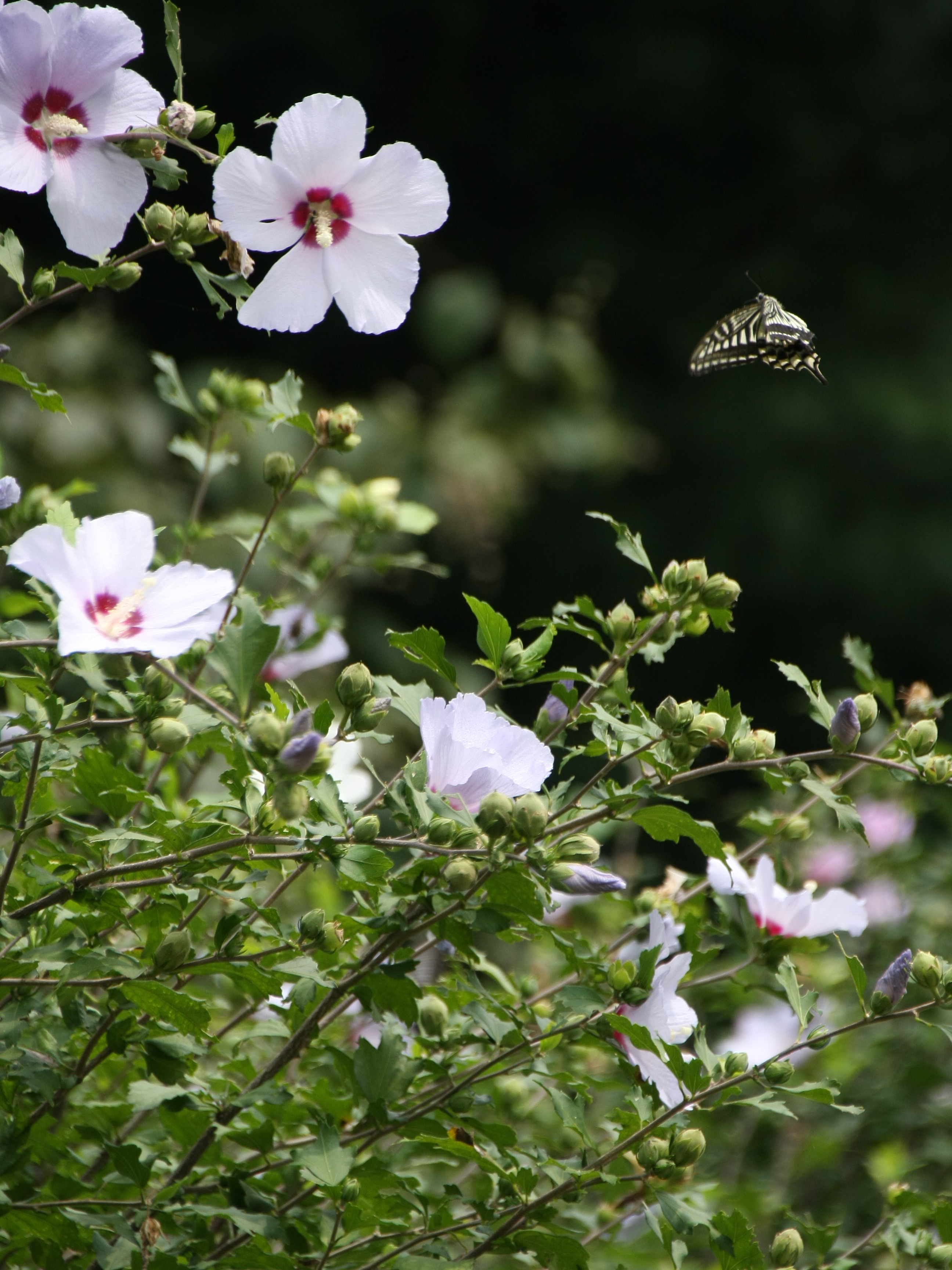 아름다운 색깔의 호랑나비도 활짝 핀 무궁화를 보며 반갑게 다가갑니다.