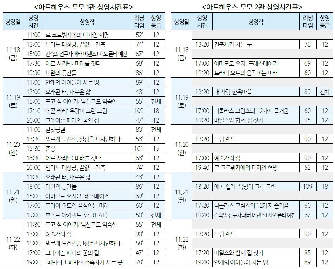 대한건축사협회와 국토교통부가 공동주최하는 서울국제건축영화제는 11월 17일 서초동 건축사회관 1층 대강당에서 개막식을 시작으로 22일까지 6일간 이화여대 아트하우스 모모에서 개최된다. 이번 영화제는 ‘건축_걷다’라는 주제로 11개국 22편의 건축영화를 상영하며 관련 게스트토크(GT), 호스트아키텍트포럼(HAF) 등 다양한 프로그램으로 관객을 맞는다. 홍보대사에는 배우 ‘김혜나’를 위촉하고 사전 홍보와 이벤트 등으로 영화제의 분위기를 고조시키고 있다.