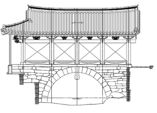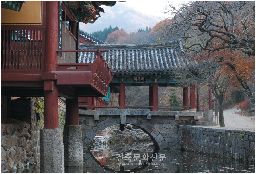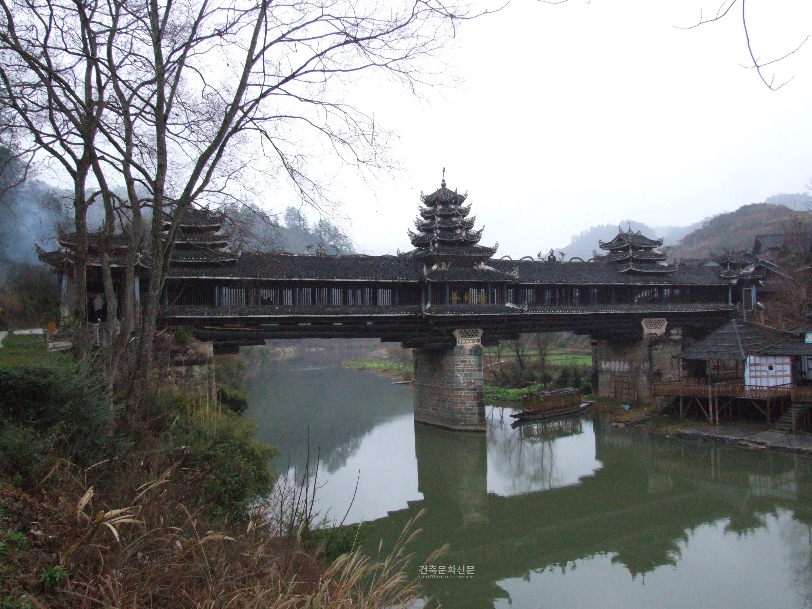 옛날이나 지금이나 개울물이 흘러가는 다리 밑은 아름다운가 보다. 특히 보름달이 뜬 날 다리 밑을 거닌다는 것은 참으로 낭만적인 일이 것이다. 더구나 다리 위에 누각이 있다면 금상첨화이다. 이태리 피렌체 등 서양에도 다리 위에 집을 지어 다리의 분위기를 한층 높이지만, 동양에도 다리 위에 집을 지어 낭만적 분위기를 북돋운다. 중국에는 이런 집이 많이 남아 있는데, 호남성 통도현 황도채 보수교의 예를 보면, 교각(다리발) 위에는 높은 탑 모양의 누각을 지어서 장식을 하고 나머지는 맞걸이(3량)집을 회랑처럼 길게 늘어 세웠다. 이것이 원래는 다리의 목조 상판이나 보를 보호하기 위한 시설이었음을 짐작케 하는 부분이다.