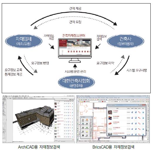 올 2월 중순부터 건축자재정보센터 오픈과 함께 ‘BricsCAD’, ‘ArchiCAD’ 등 S/W에 건축자재정보 검색과 라이브러리 삽입 등 3rd Party 기능을 탑재해 회원에게 공급할 계획이라 밝혔다.