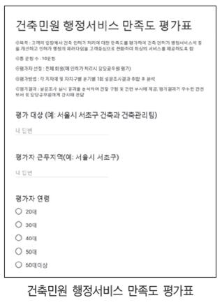 2월 1일부터 허가관청의 건축 인허가 관련 행정서비스와 사협의 민원서비스에 대한 만족도 평가를 실시한다.