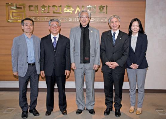 대한건축사협회(이하 사협)는 4월 10일 건축사회관 임원실에서 국제적십자위원회(ICRC, International Committee of the Red Cross)와 ‘건축분야 한국인 채용 관련 회의’를 가졌다. 이날 회의에는 조충기 대한건축사협회장, 이근창 국제위원회 자문위원, 유승열 국제위원장과 ICRC 동아시아지역대표단 Martin Unternaehrer 인사마케팅담당자, ICRC 한국사무소 김소영 공보관이 참석했다.