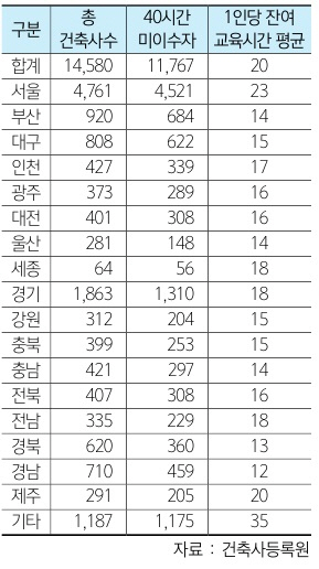 14,580명 중 11,767명 건축사실무교육 미이수, 평균 20시간 이수해야