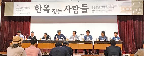 6월 2일 명동포스트타워에서 ‘2017 auri 국가한옥센터 한옥포럼’이 ‘한옥 짓는 사람들’ 주제로 진행됐다. 주제발표에서 LH주택연구원의 박준영 수석연구원은 오늘날 한옥은 단층에서 복층, 목구조에서 복합구조로 모색하는 과도기적 단계에 있으며, 이는 한옥에 대한 분야별 기준이 다르므로 각종 인·허가상의 법적 기준과 책임, 그에 따른 업무범위에 관한 기준, 정책적 모색이 동반돼야 함을 인지시켰다. 덧붙여 “한옥과 현대건축의 결합은 중요하며 지역적 특성을 반영한 보급형 한옥의 기준 제시와 수요자의 요구에 의한 한옥을 구분하되 개량화된 한옥의 형태(타입)적 분류체계로의 접근이 요구된다”며 “시공업체 등록은 현실과 이상의 괴리를 좁히는 검증을 전제로 한 단계적 등록이 필요하다”고 전했다.