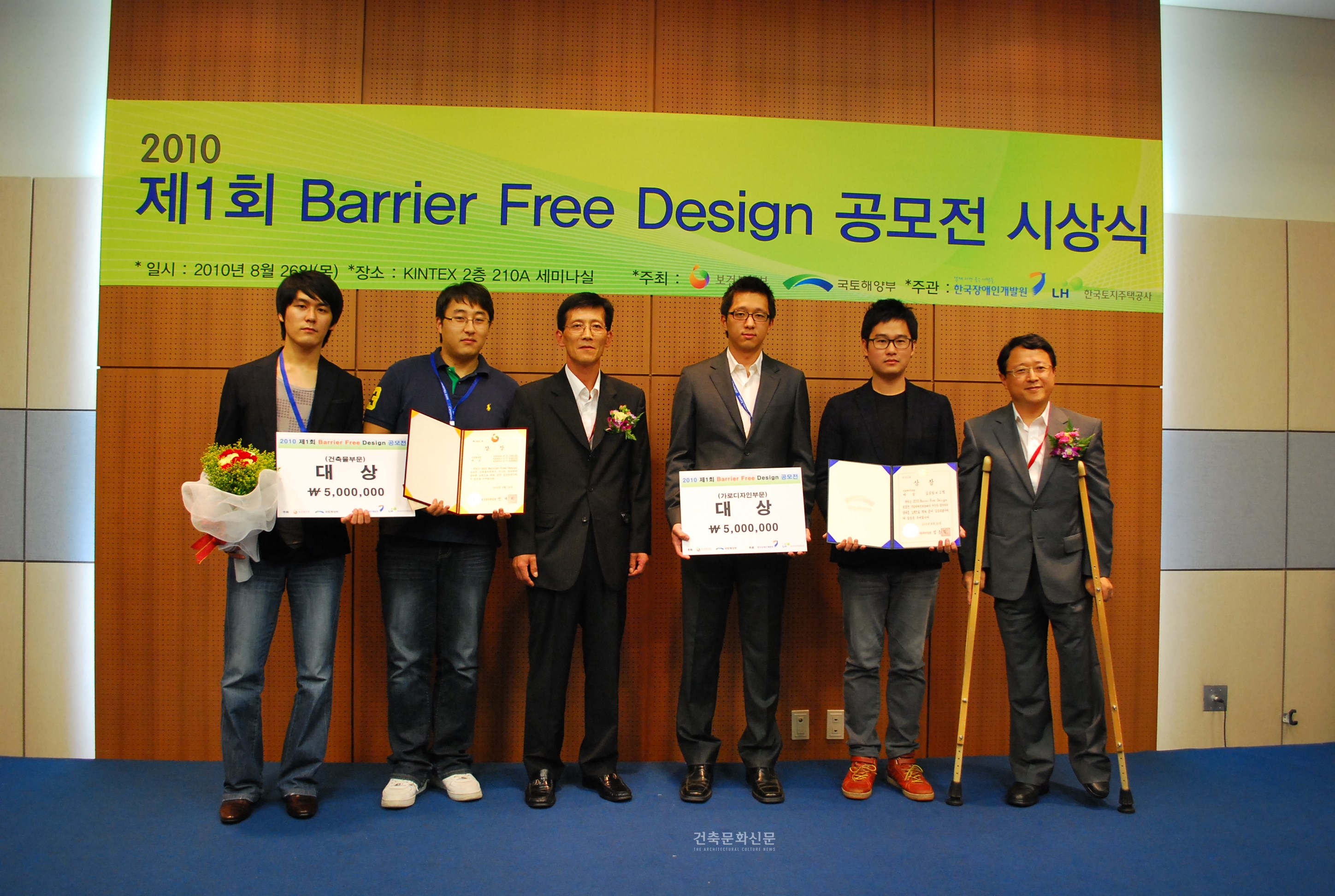 보건복지부와 국토해양부가 공동으로 주최한 「장애물 없는 생활환경 디자인」공모전에서 건축물 부문 원광대학교의 ‘Harmony’와 가로(街路)디자인 부문 명지대학교가 영예의 대상을 차지했다. 건축물 부문 대상 수상작 ‘Harmony’는 유선적 디자인을 통해 장애인과 비장애인 모두 동일한 공간에서 장애 없고 안전하게 이용가능 하도록 요소별 공간의 장애인 생활환경을 잘 표현하여 대상을 받았다.