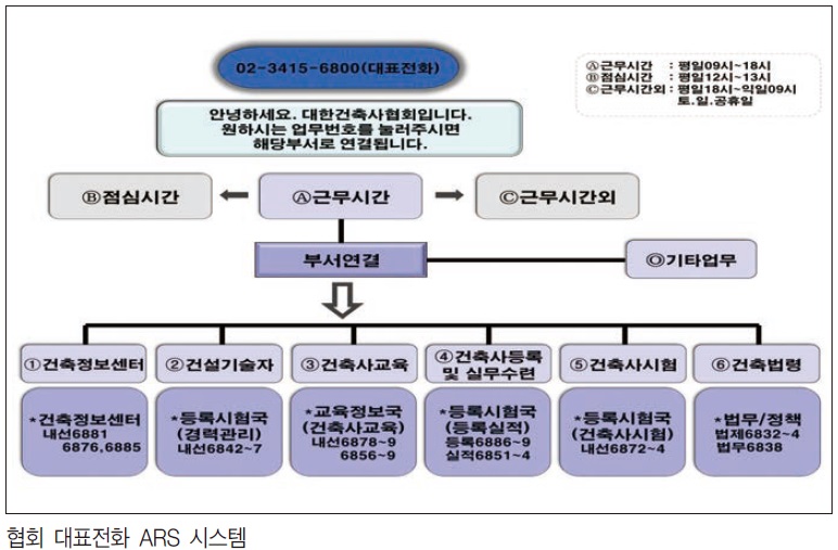 전체 내선으로 무작위로 연결되던 시스템에서 ARS 안내멘트 후 건축정보센터, 건설기술자, 건축사교육 등 해당 주요부서로 연결되는 방식으로 개선된다.