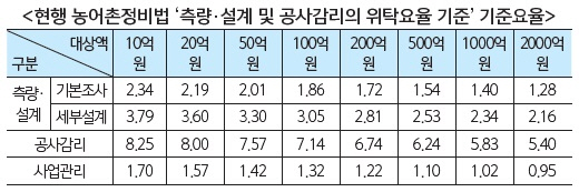 농어촌정비사업 내 ‘건축공사 설계업무’, 낮은 요율 적용 문제