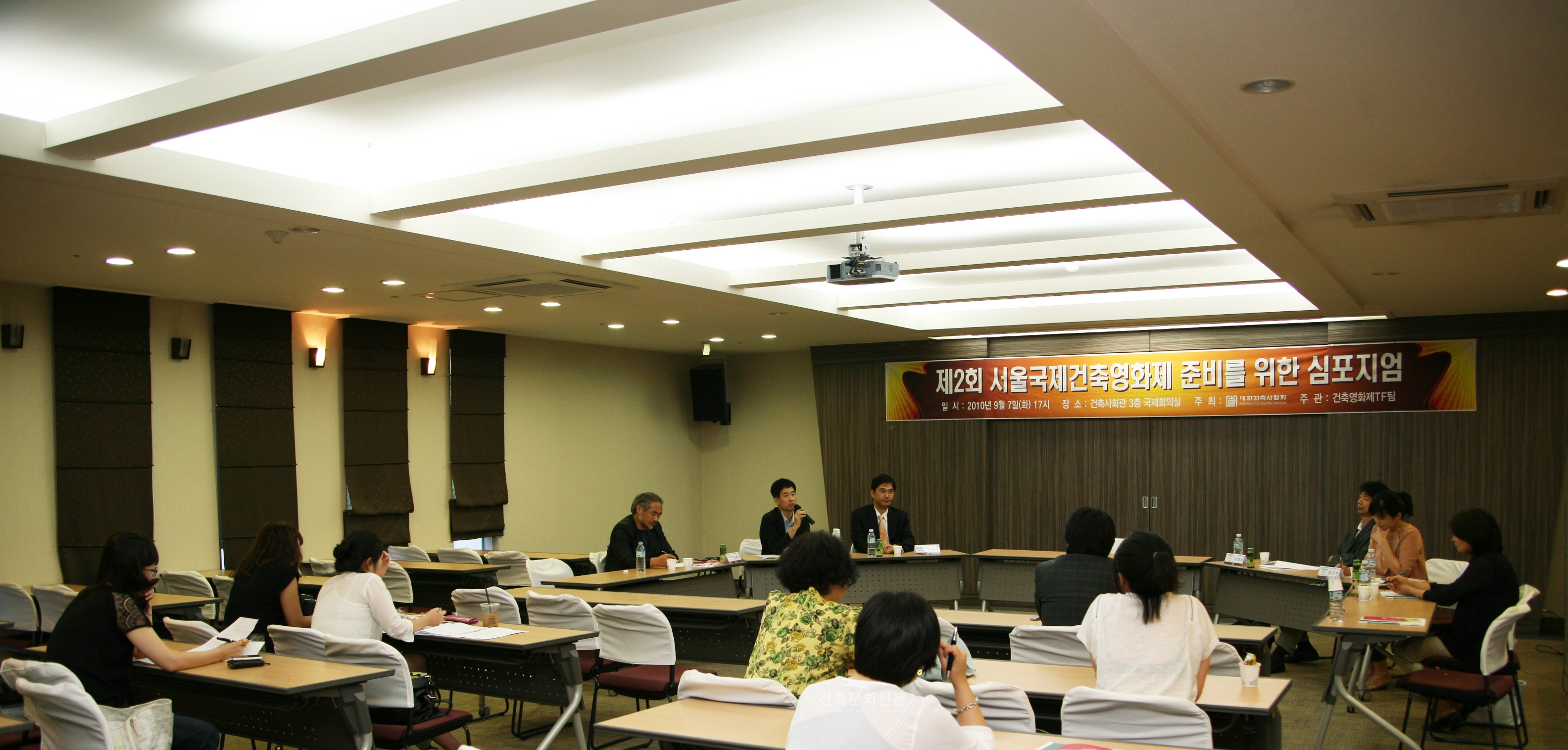 올 11월 11일 개최될 ‘제2회 서울국제건축영화제’ 준비사항에 대한 심포지엄이 9월 7일 건축사회관 3층 국제회의실에서 열렸다. 이날 행사에는 건축전문지 기자들과 건축사 회원 및 영화제에 관심 있는 일반인 등이 참석해 다양의 의견을 나누었다.