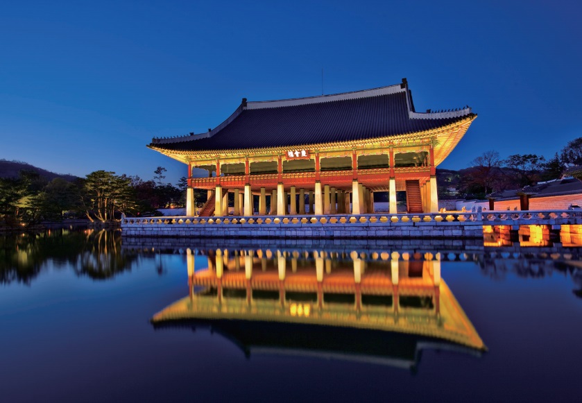 경회루 근처 관람객이 많아 좋은 위치 선점이 쉽지 않았는데 때마침 바람이 잔잔해져 반영까지 담담히 담을 수 있어서 흡족했다. 경회루의 야경은 과연 국보급이다. 연못을 앞에 두고 도도히 서 있는 경회루의 모습에서 궁궐 건축의 품격이 느껴진다. 오래 그곳에 머물게 하는 마력이 있다. - ‘UIA 2017 서울건축사대회’를 축하하며 경회루 야경사진을 올립니다.