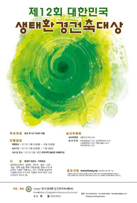 자세한 사항은 사.한국생태환경건축학회 사무국(02-501-4053,1062)으로 문의하면 된다.